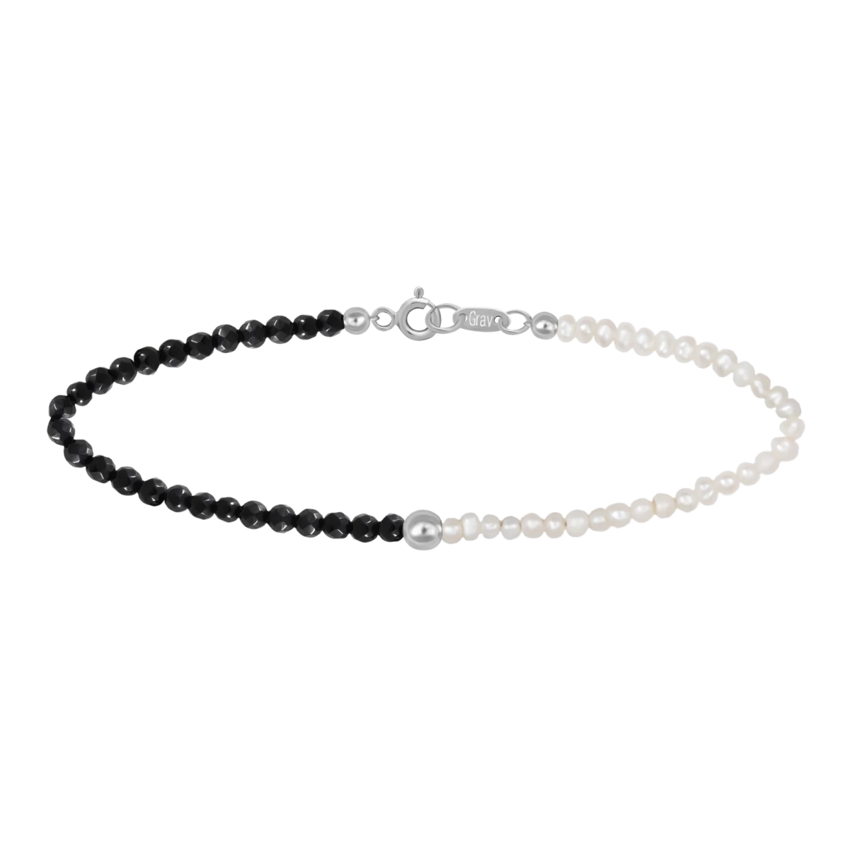 Zapestnica iz črnega oniksa in bele sladkovodne biserne 925 srebra