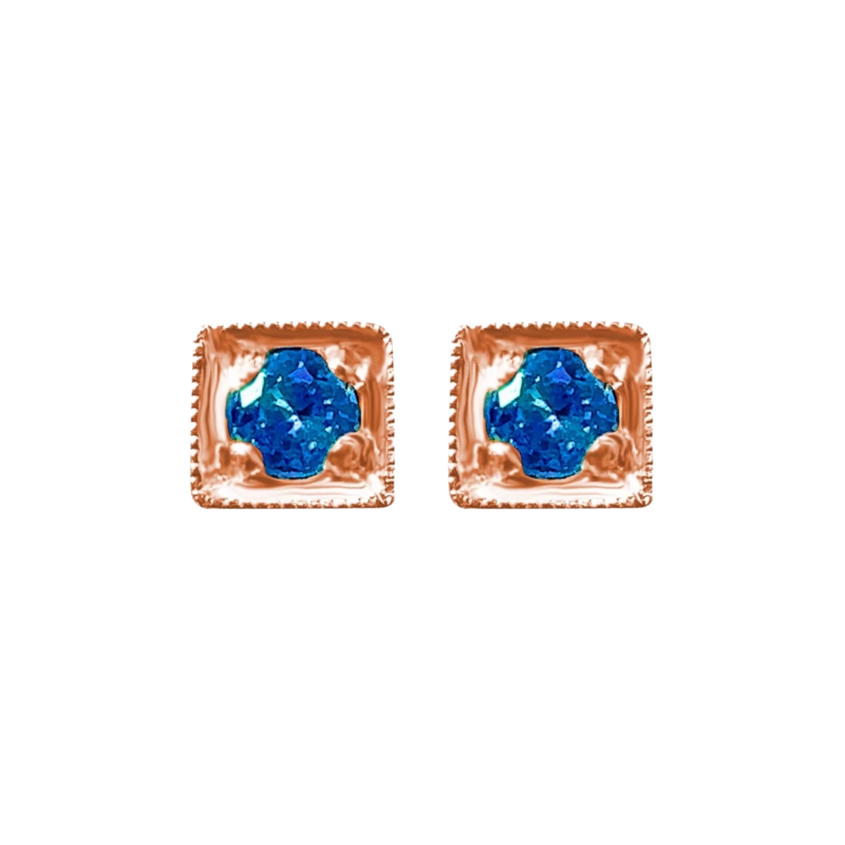 Uhani iz roza zlata 14K z modro cirkonijo, poldragi kamen, 1 kamen