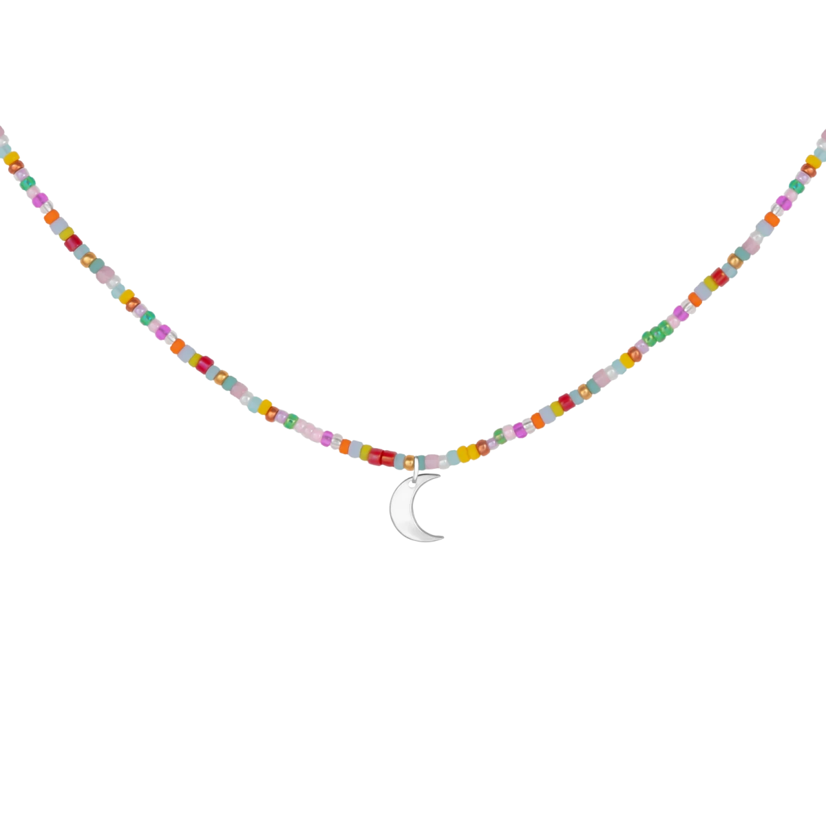 Barvita ogrlica z biserom in luno iz srebra 925