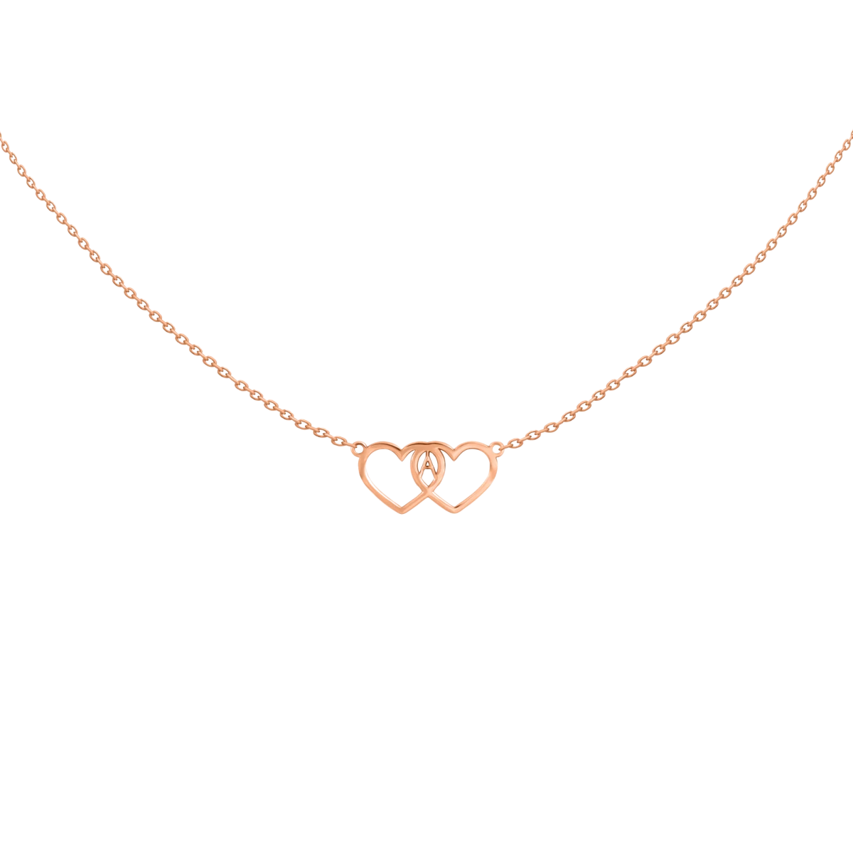 Dvojni obris srca s črko ogrlica iz roza zlata 14K