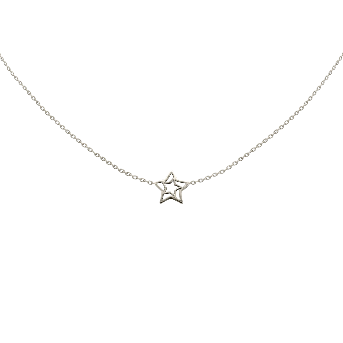 Ogrlica iz belega zlata 14K z dvojno obrobo zvezde
