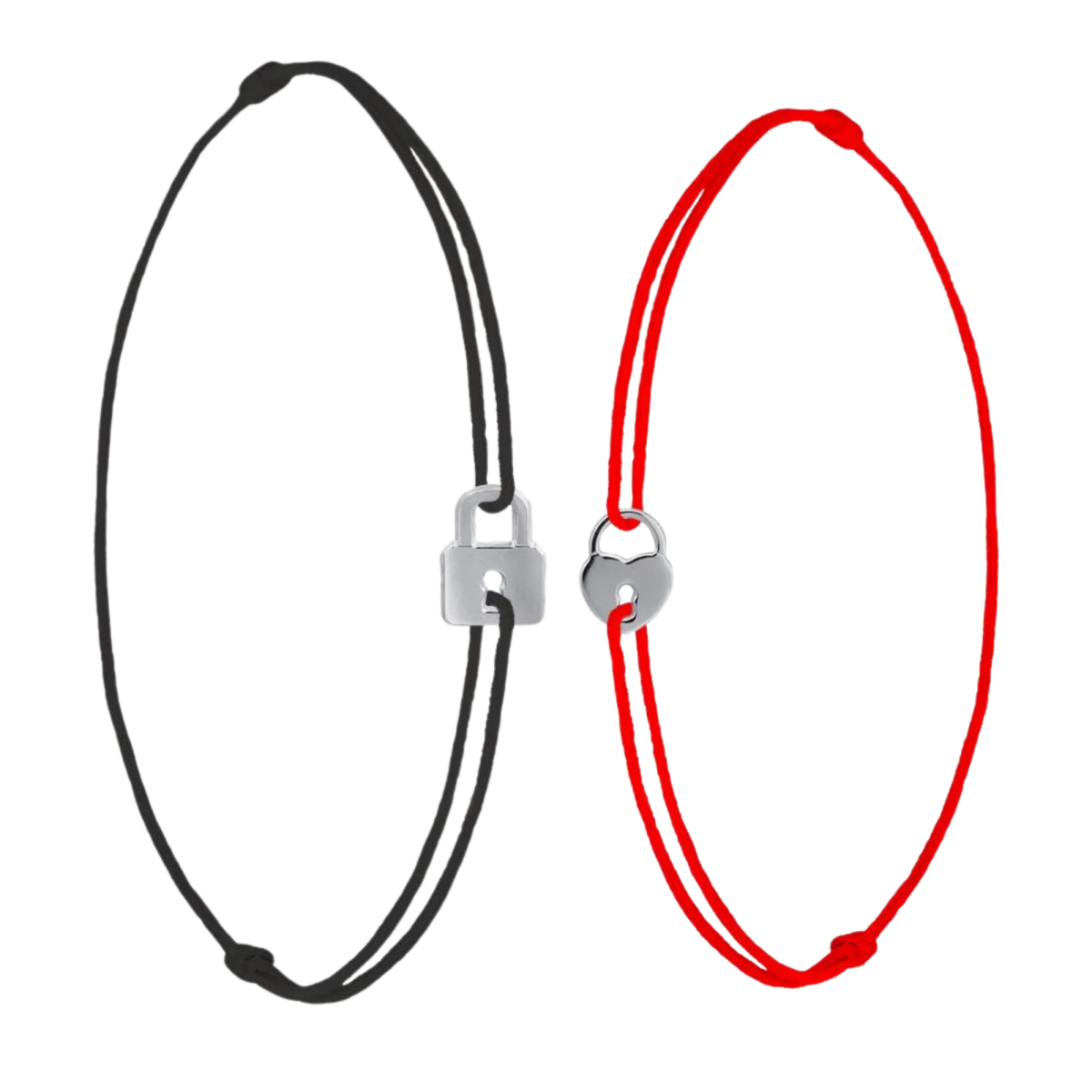 Posebno in izjemno trpežno: ta par zapestnic s prikazom ključavnic, nanizan na proti trganju odporno nit, je del ekskluzivnega izbora. Kot simbol globoke povezanosti je popoln za pare v duhu pripadnosti in povezanosti. V opombah navedite, katera zapestnica naj bo naročena s katero barvo niti in v kateri velikosti.