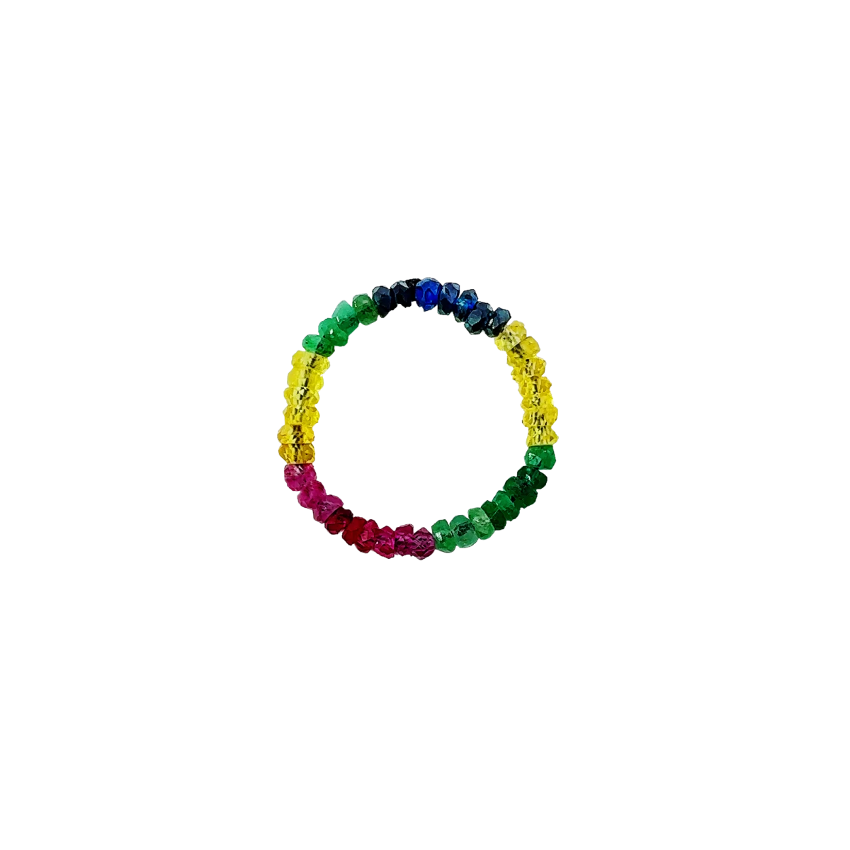 Dragulj med dragulji. Osupljivo barvita, vpadljiva kombinacija za ljubitelje posebnih kosov. V tem kosu nakita se združijo vsi blagodejni učinki in lepota smaragda, rubina in safirja. Nosite ga kot komplet z drugimi kosi iz kolekcije Miami.