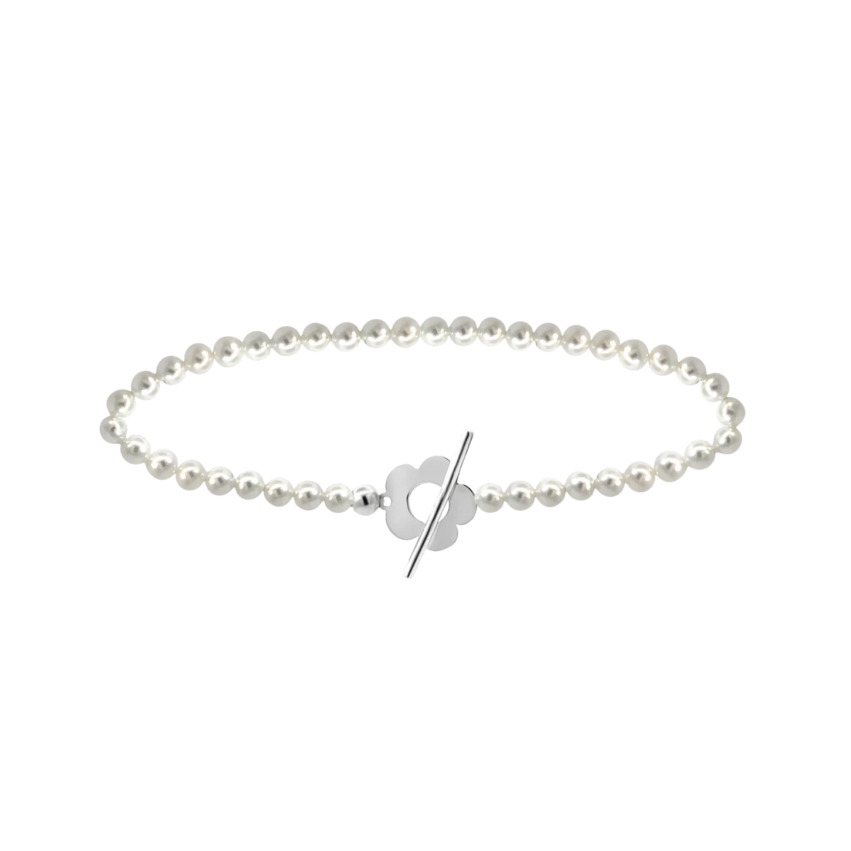 Očarajte sebe in ljudi okoli sebe z ekskluzivno zapestnico, katere nežno zapenjalo v obliki cveta diskretno, a odločno poudari nežno eleganco z biserom okrašenega dodatka.