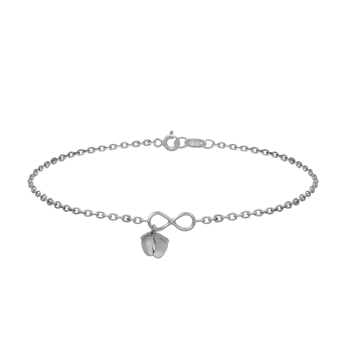 Srebrna zapestnica Neskončnost z otroškimi stopalci