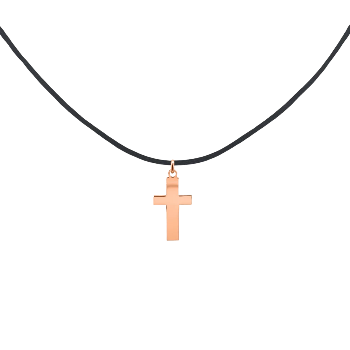 Moška ogrlica na vrvici s križem iz roza zlata 14K