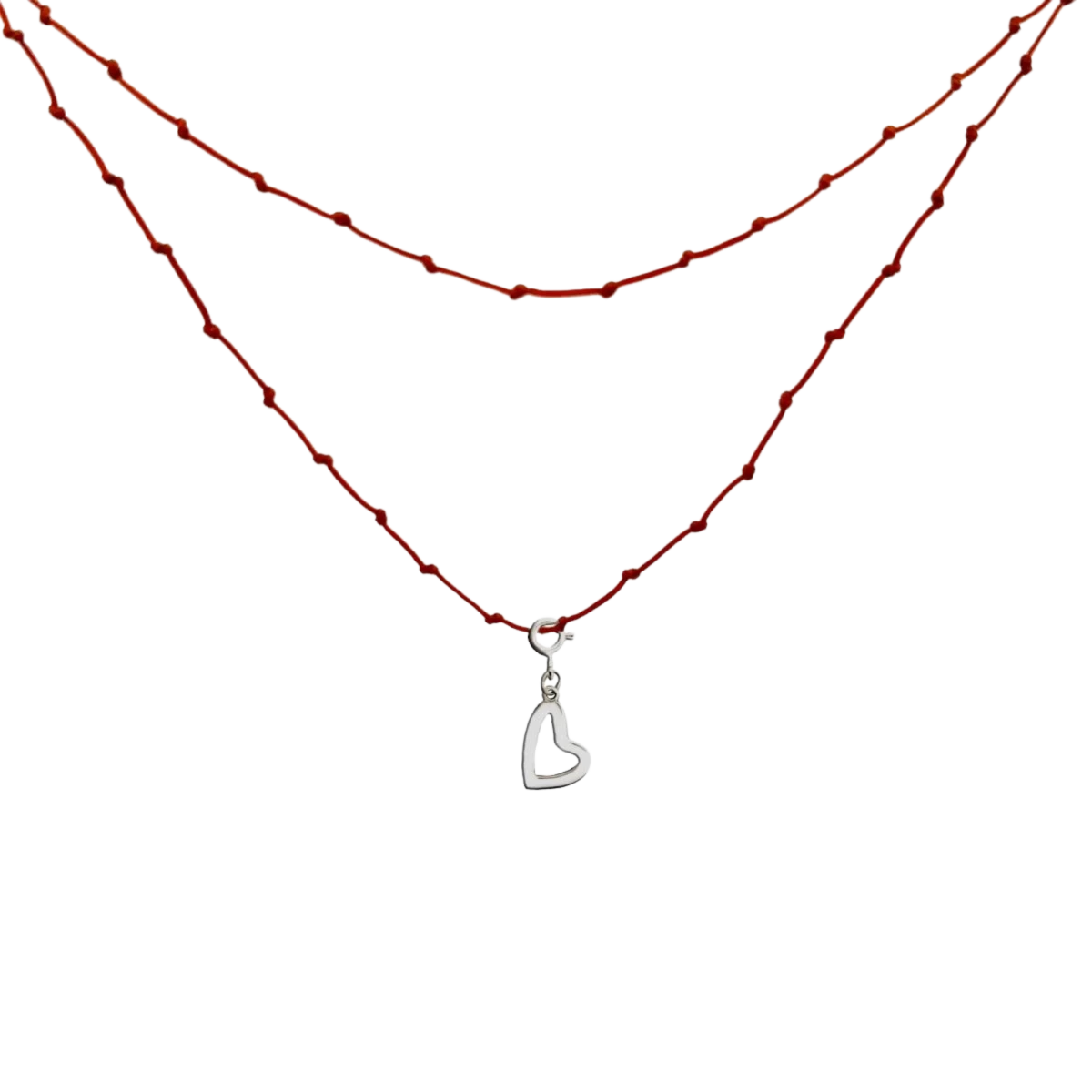 Dolga vozlana nitna ogrlica iz sterling srebra 925 s pisanim obeskom v obliki srca