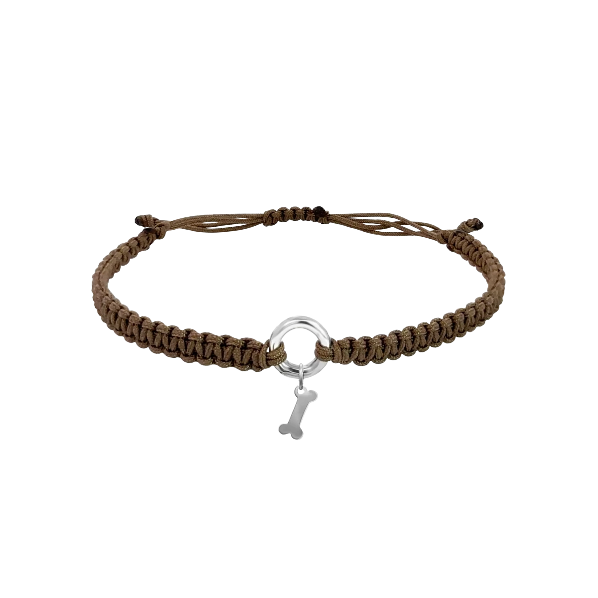 Makrame zapestnica z obrisnim krogom in visečo pasjo kostjo iz srebra 925