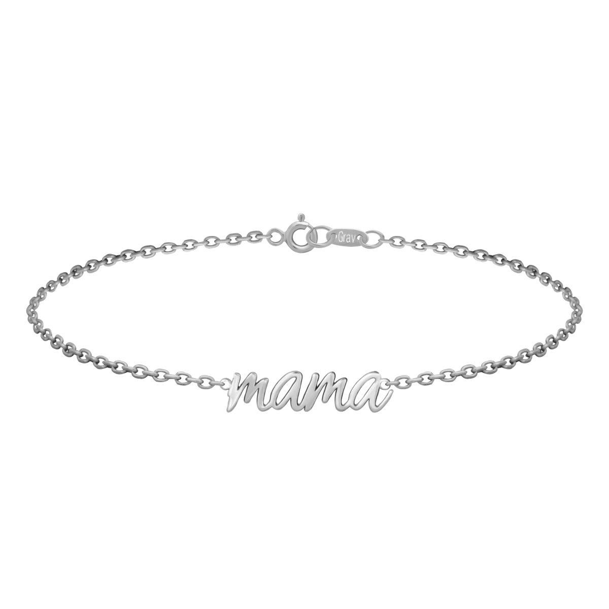 Ročno izdelana zapestnica z napisom Mama, ki naredi vsako priložnost posebno. Obesek je izdelan z uporabo pisave Allura.