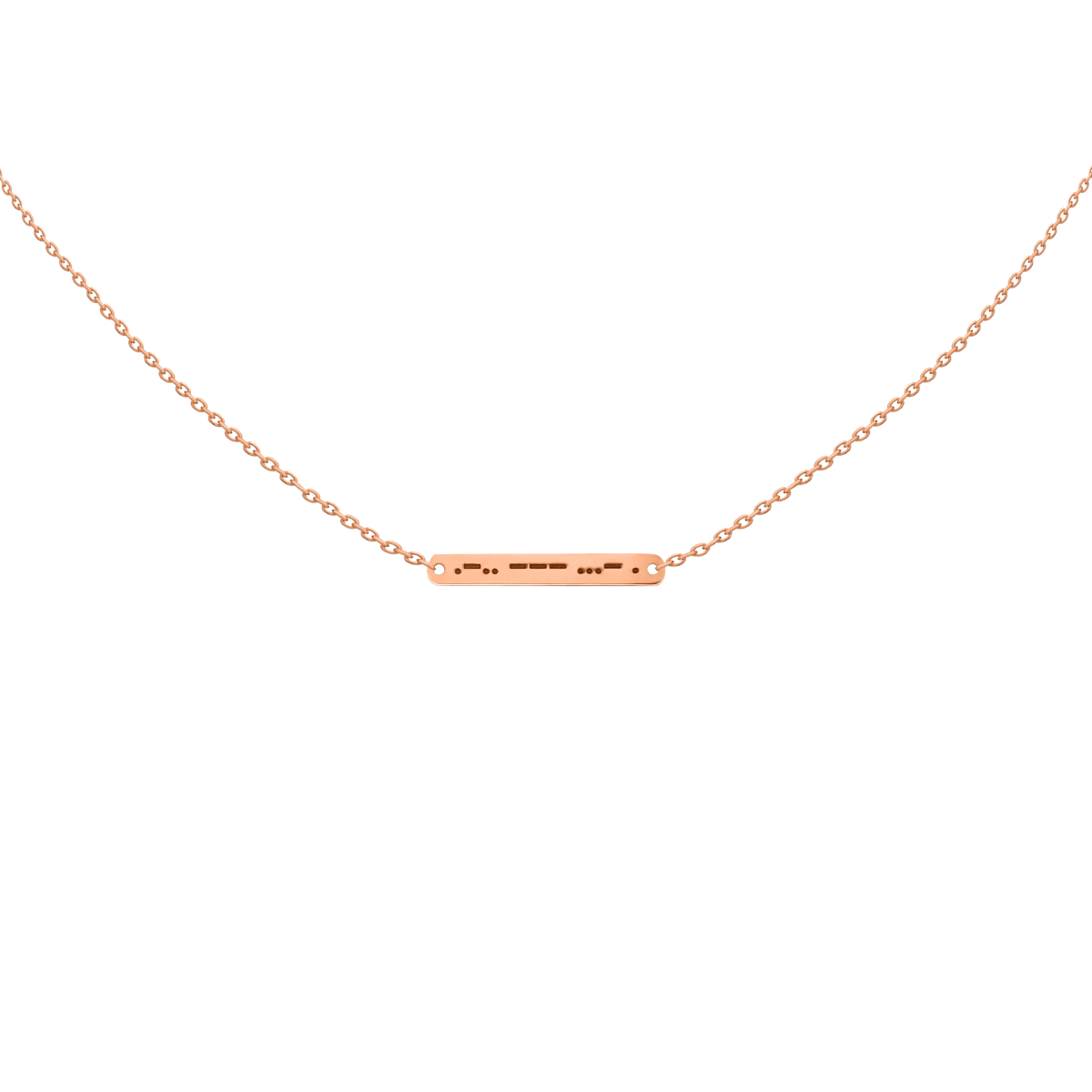 Dolga tanka ploščica Morse LOVE roza zlato 14K ogrlica