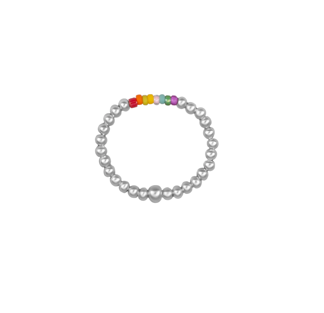 Majhen barvit prstan iz niti s kroglicami iz srebra 925