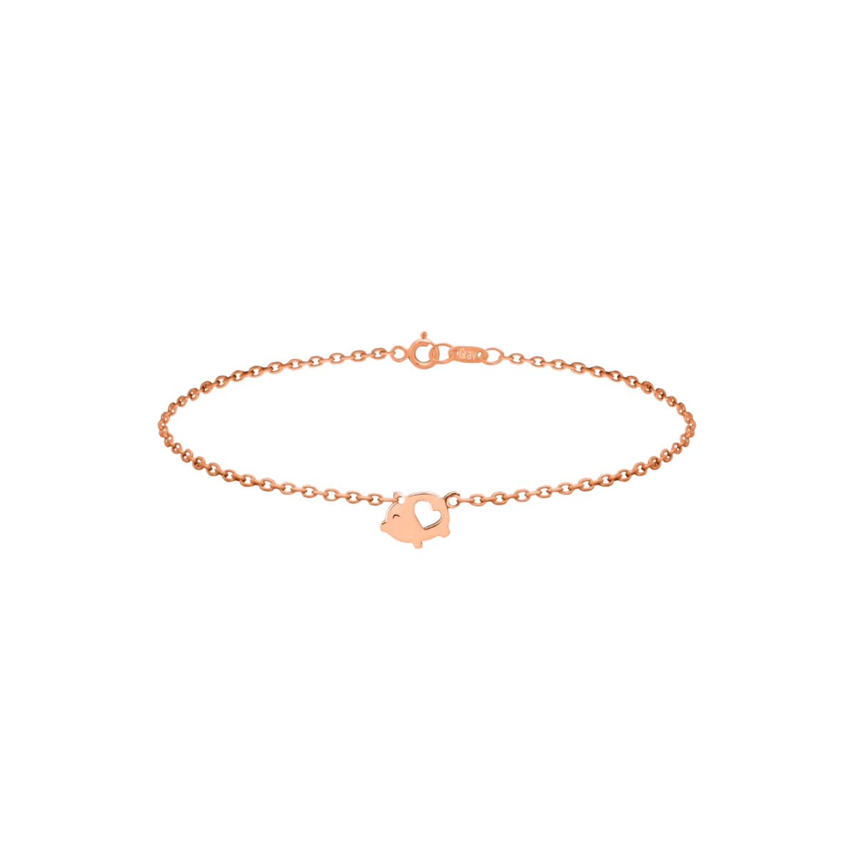 Pravokotna otroška zapestnica Lucky Pig iz rožnatega zlata 14K
