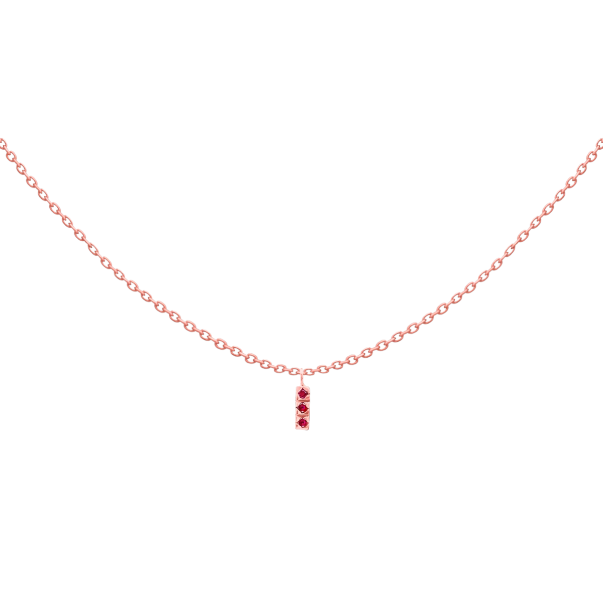 Roza zlata ogrlica 14K s 3 rdečimi cirkoniji poldragega kamna