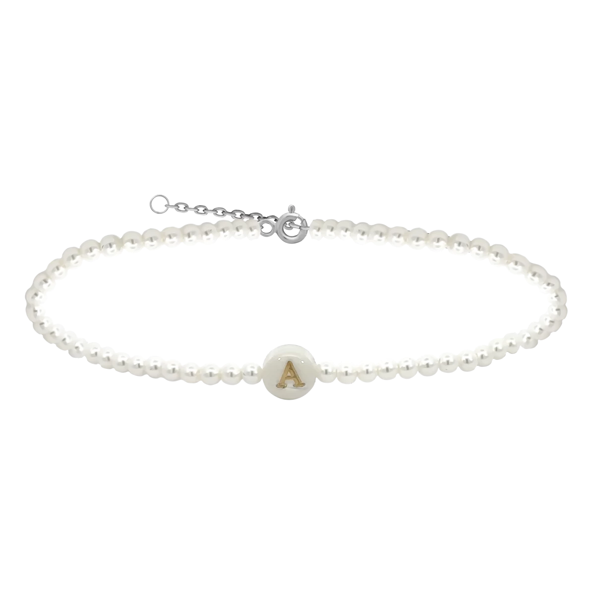 Majhna gleženjska verižica s črkami in biseri iz srebra 925