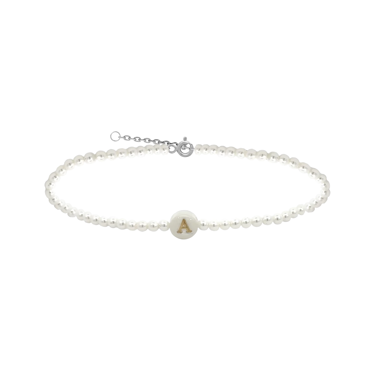 Zapestnica iz srebra 925 z majhnimi biseri in črkovnim obeskom