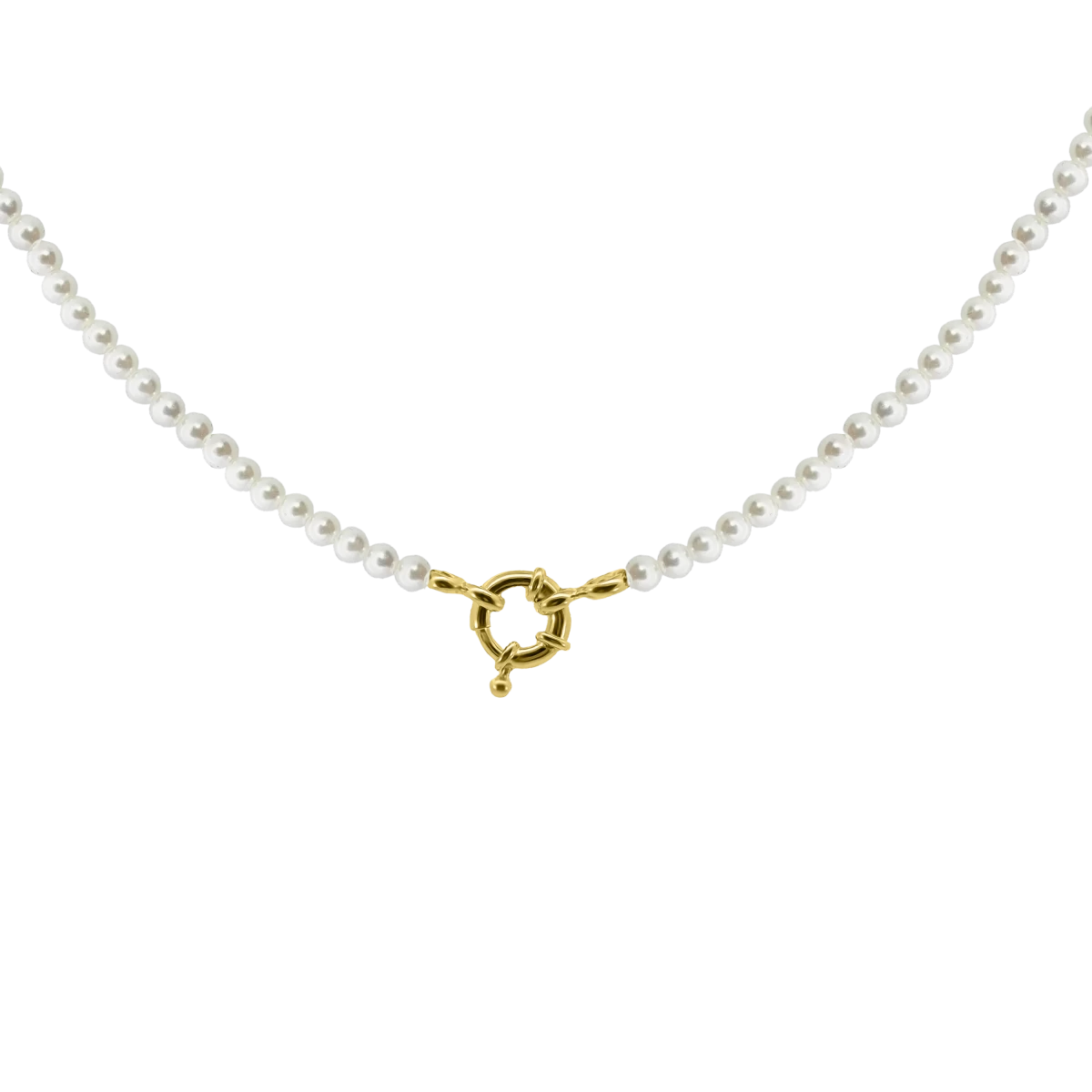 Ogrlica, ki združuje naravno lepoto in sodoben dizajn: biseri elegantne velikosti in osupljiva, privlačna zaponka, prevlečena z 18-karatnim rumenim zlatom na srebru, je popolna izbira za tiste, ki želijo izstopati iz množice.