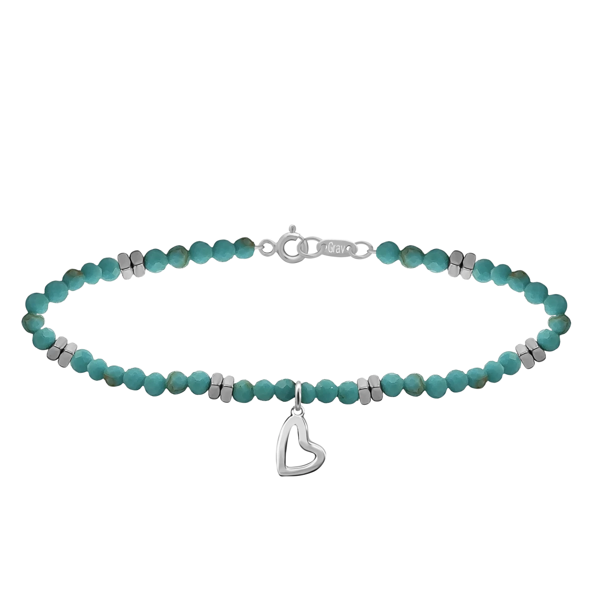 Gleženjska verižica iz turkiznega minerala z amorfnim konturnim srcem iz srebra 925