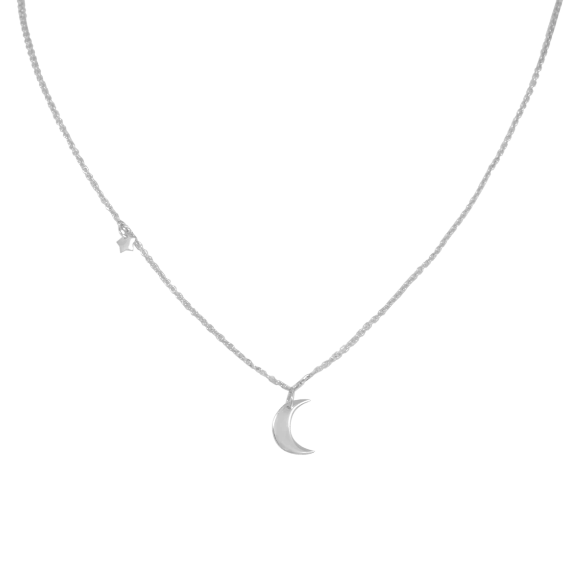 Čudovit obesek v obliki lune z majhnim obeskom v obliki zvezde. Popolna kombinacija očara vsakogar s svojo lepoto, navdihnjeno z nebom. Ta poseben kos nakita je odlična ideja za darilo, hkrati pa tudi izvrstno presenečenje zase.