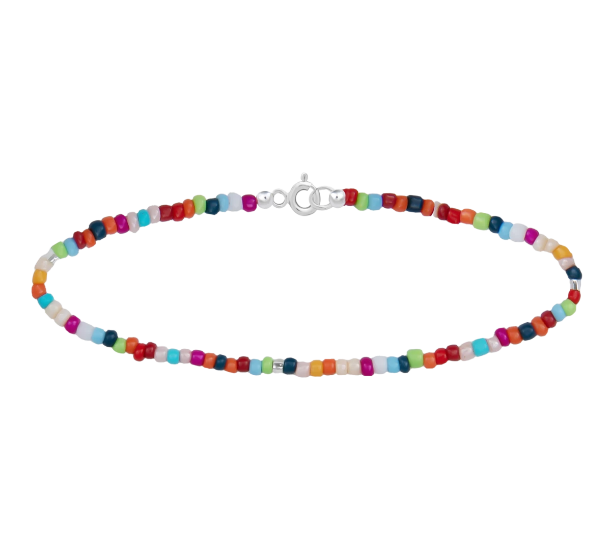 Oblikovalska gleženjska zapestnica z biseri. Ta kos nakita prikliče poletno razpoloženje in s svojim veseljem popestri vsak videz. Nakit se zapenja s srebrno zaponko, ki ustvarja popolno harmonijo z barvami. Dopolnite videz z barvitim kosom.