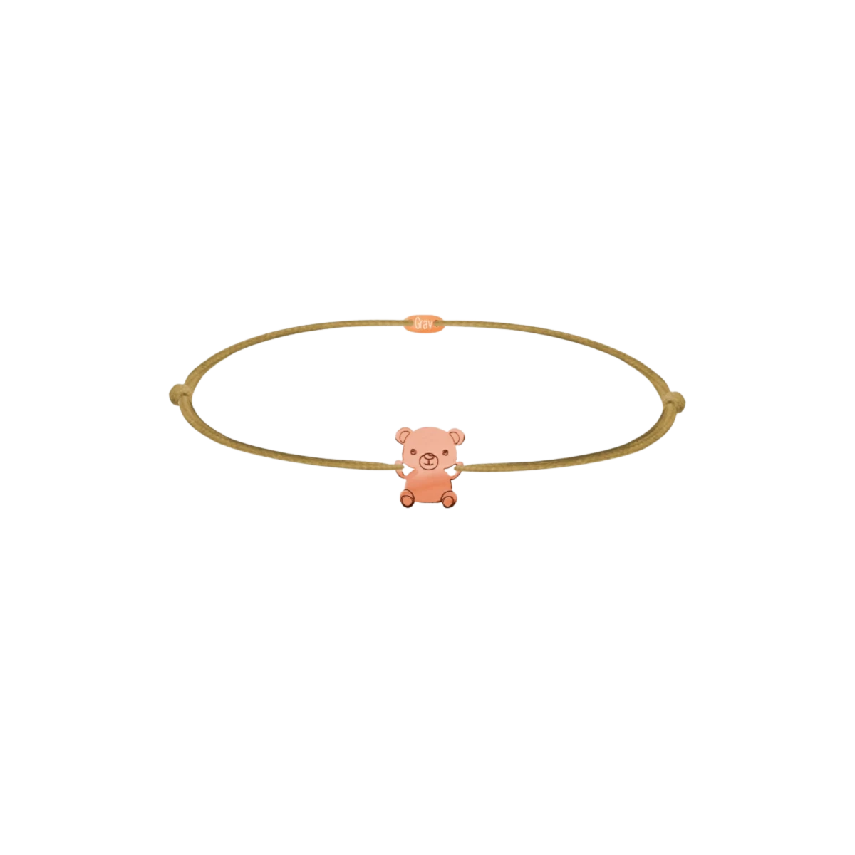 Obesek medvedek iz belega zlata, rdečega zlata, rumenega zlata ali srebra za najmlajše. Zapestnica je izdelana z barvno vrvico, odporno na trganje.