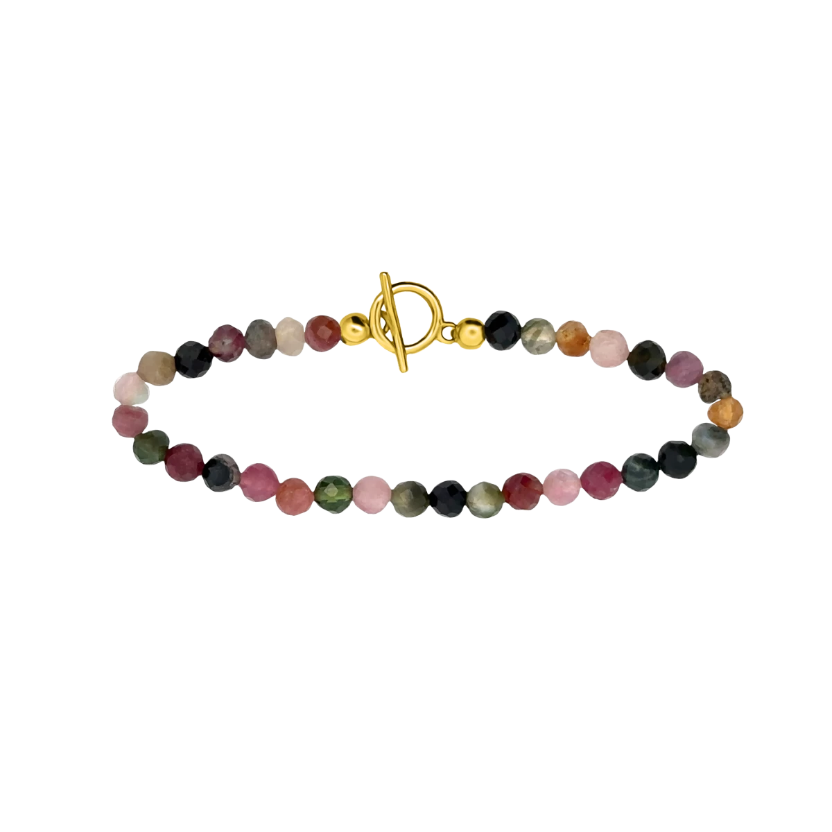 Turmalinska zapestnica zagotavlja celovito zaščitno energijo, medtem ko zaponka iz srebra, prevlečenega z rumenim zlatom, poudari naravno lepoto in ekskluzivnost minerala z moderno estetiko.