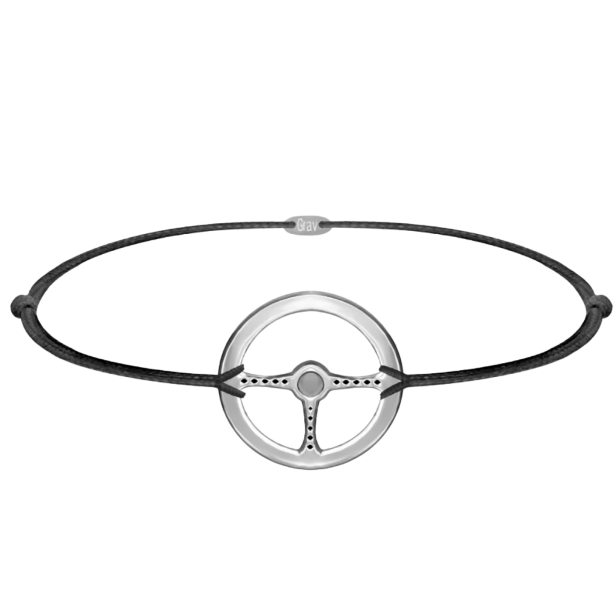 Srebrna zapestnica iz vrvice z motivom avtomobilskega volana