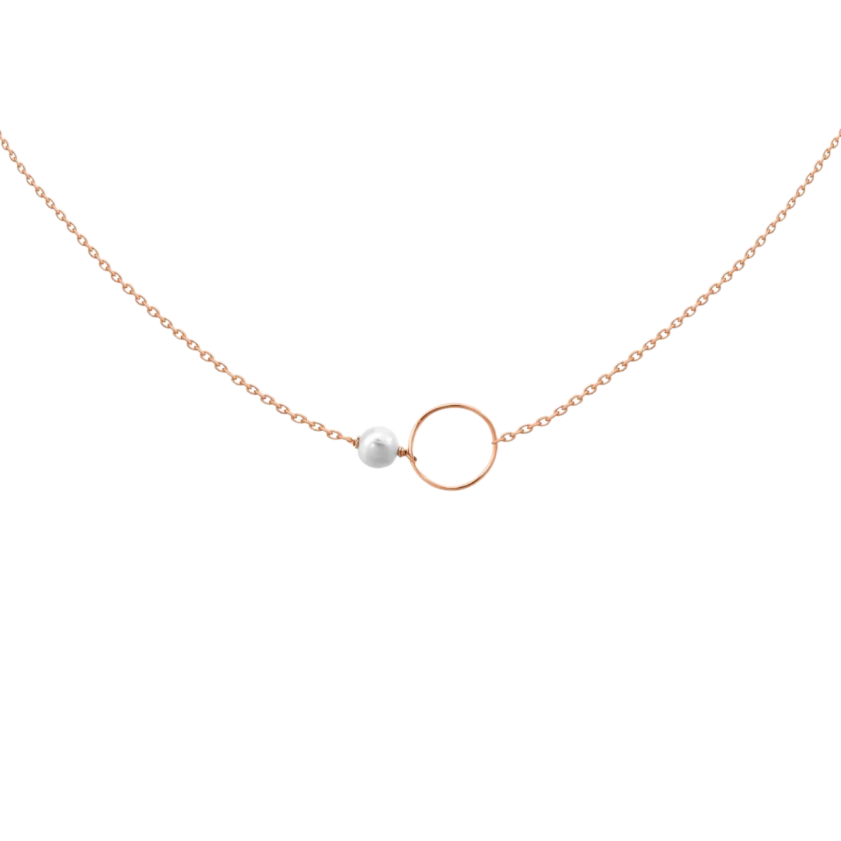 Ogrlica iz sladkovodnega bisera in roza zlata 14K z obeskom Contour Circle