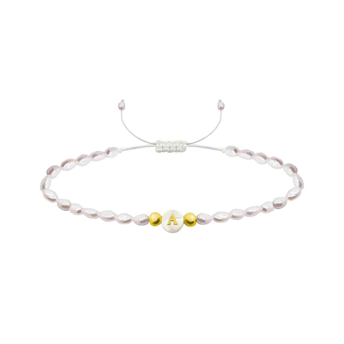 Bela vrvna zapestnica iz sladkovodnih biserov z črko
