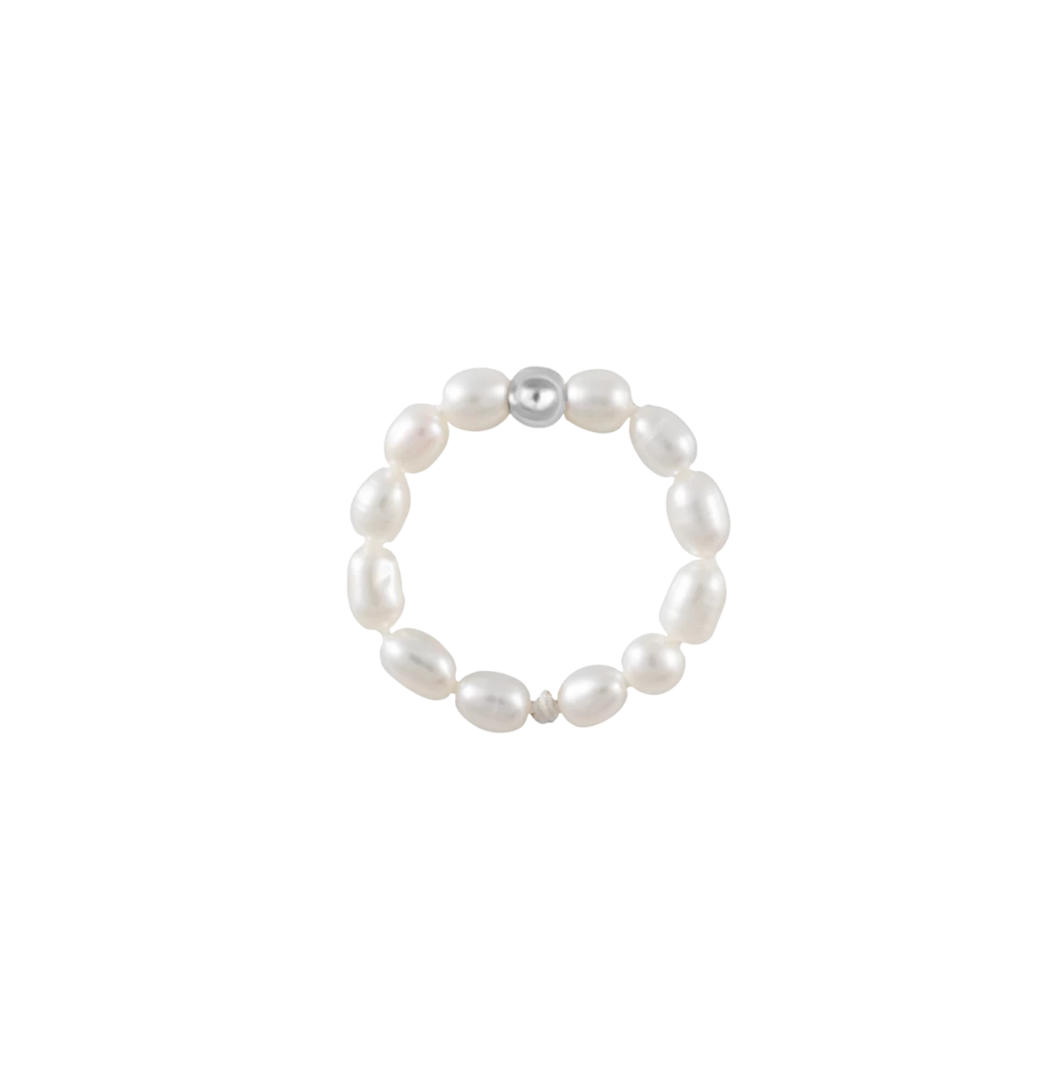 Bel prstan s sladkovodnim biserom in srebrno kroglico 925