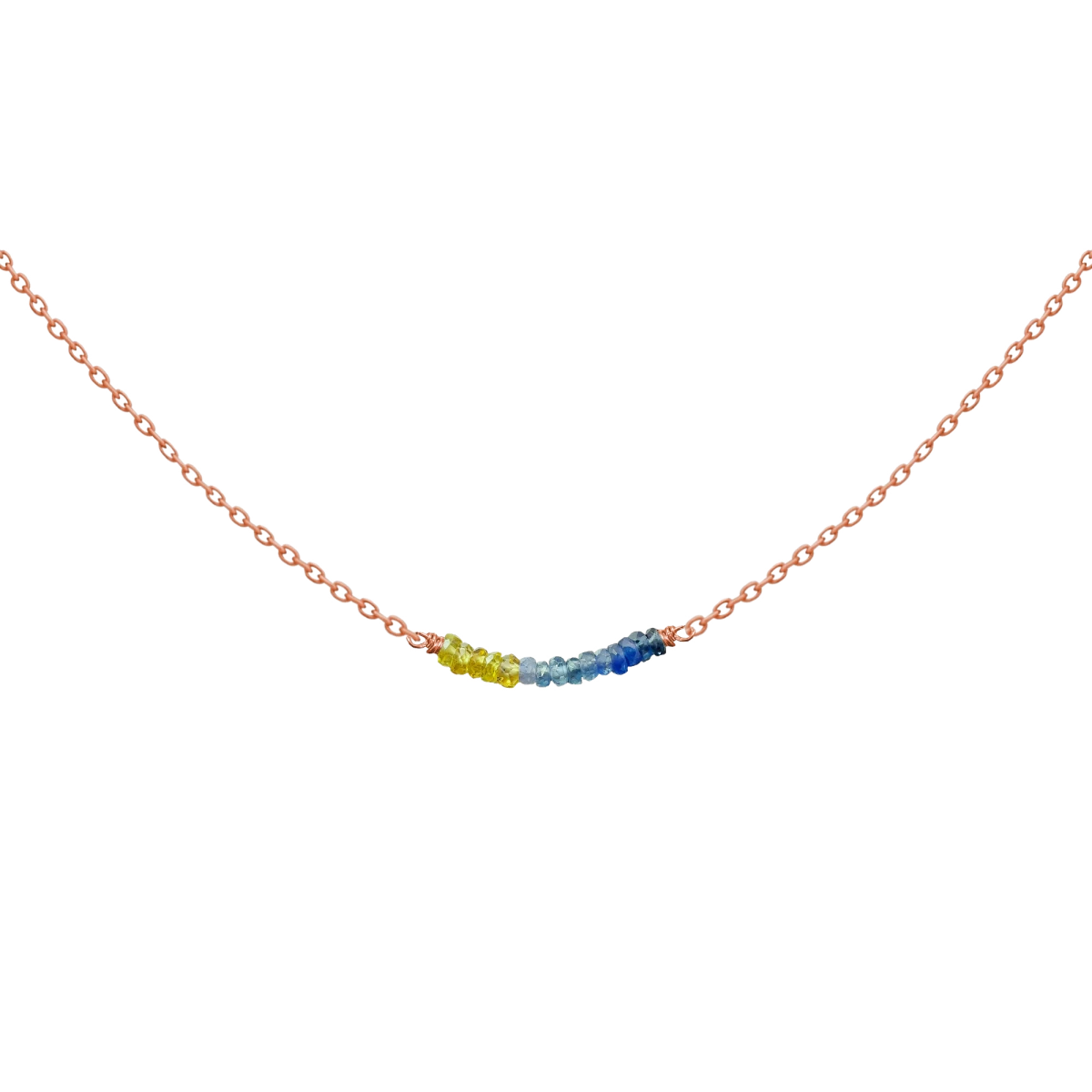 Ogrlica iz 14K rožnatega zlata z rumenim in modrim safirjem