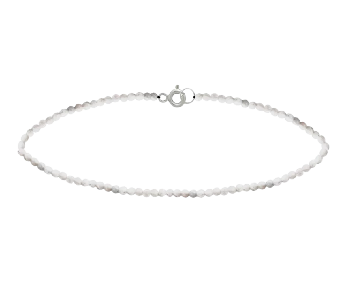Odkrijte nakit iz mesečevega kamna, ki ne le poudari prefinjen slog, temveč videzu doda posebno avro z naravnim sijajem mesečine. Vsak kos nakita iz mesečevega kamna nosi energijo narave in čisto esenco čarobne mesečine ter se popolno poda k modernemu ali klasičnemu slogu. Velikost mineralov: 2 mm, zapestnica se zapira s sponko iz srebra 925.