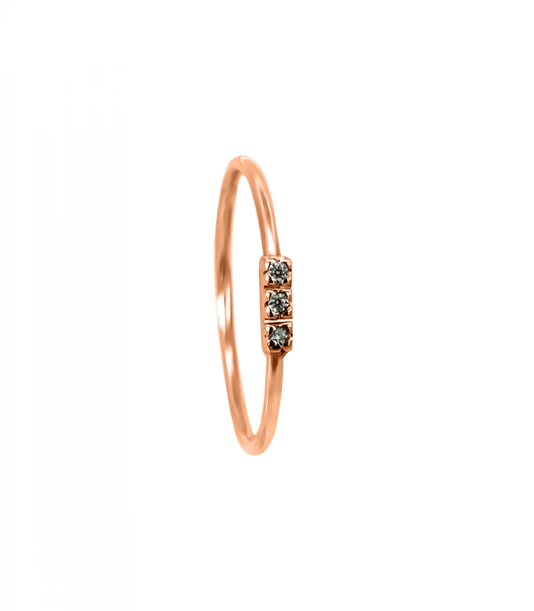 Roza zlat 14K prstan s 3 kubičnimi cirkoniji in poldragim kamnom