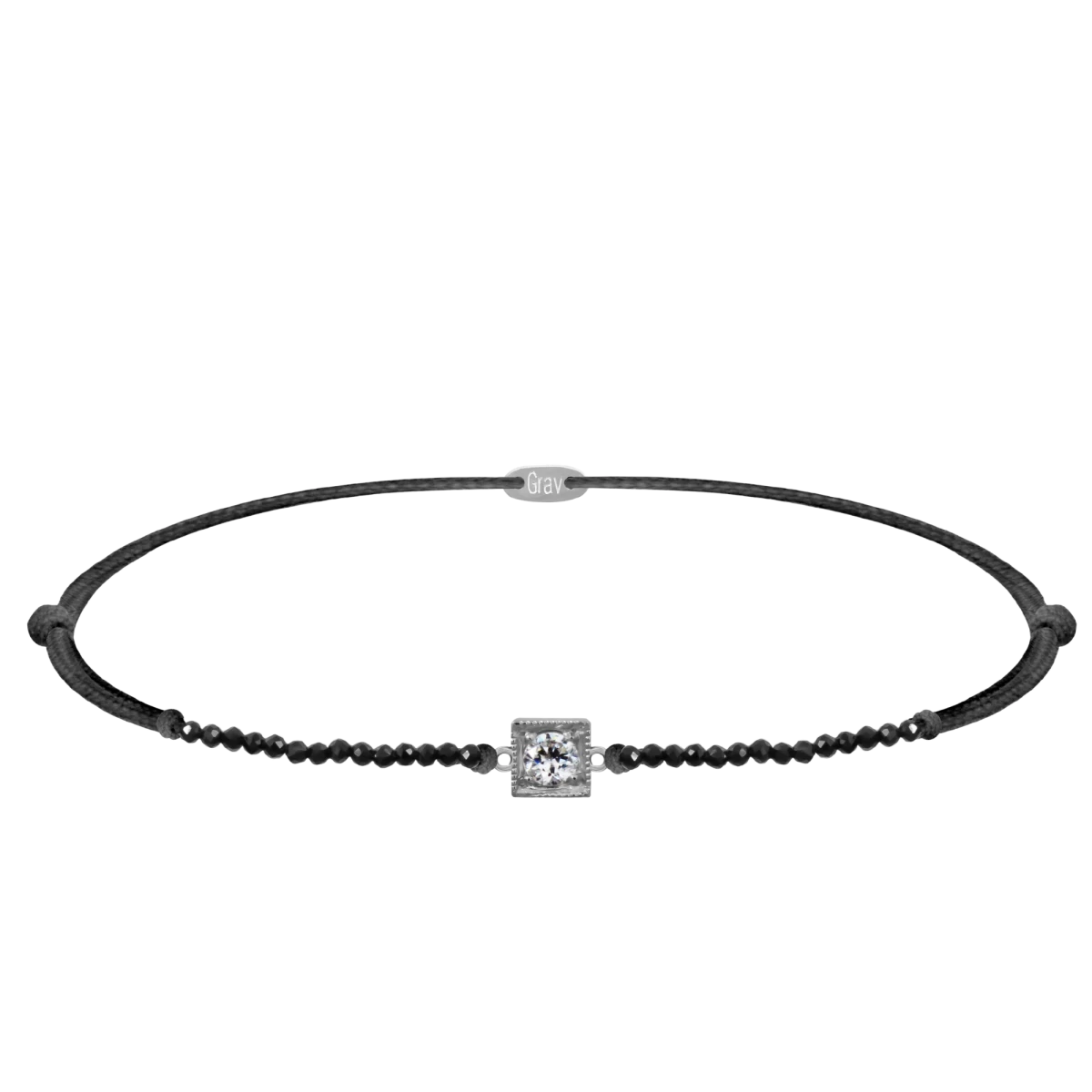 Zapestnica z vrvico, okrašena z bleščečim kamnom iz cirkonije. Eleganten kamen, obdan z naravnimi minerali. Edinstveno izdelana zapestnica z vrvico bo zagotovo postala vaš najljubši kos, kombinirajte jo s kolekcijo nakita z dragimi kamni za popoln celoten videz.