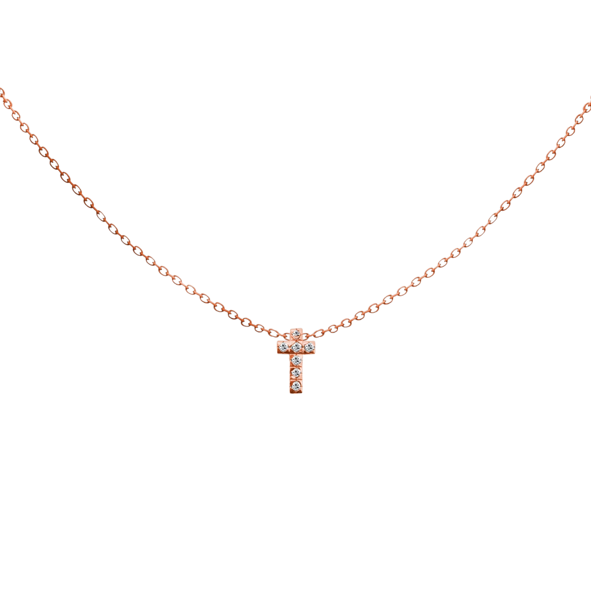 Ogrlica s križem iz kubičnega cirkonija iz 14K rožnatega zlata