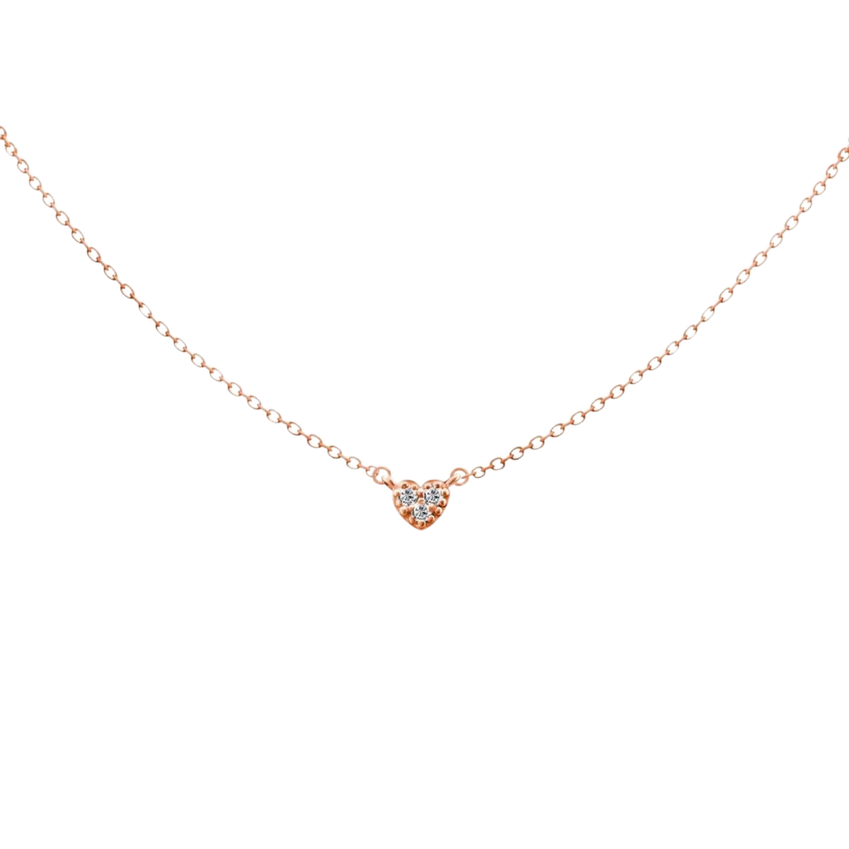 Ogrlica iz roza zlata 14K z obeskom v obliki srca z belimi cirkoniji
