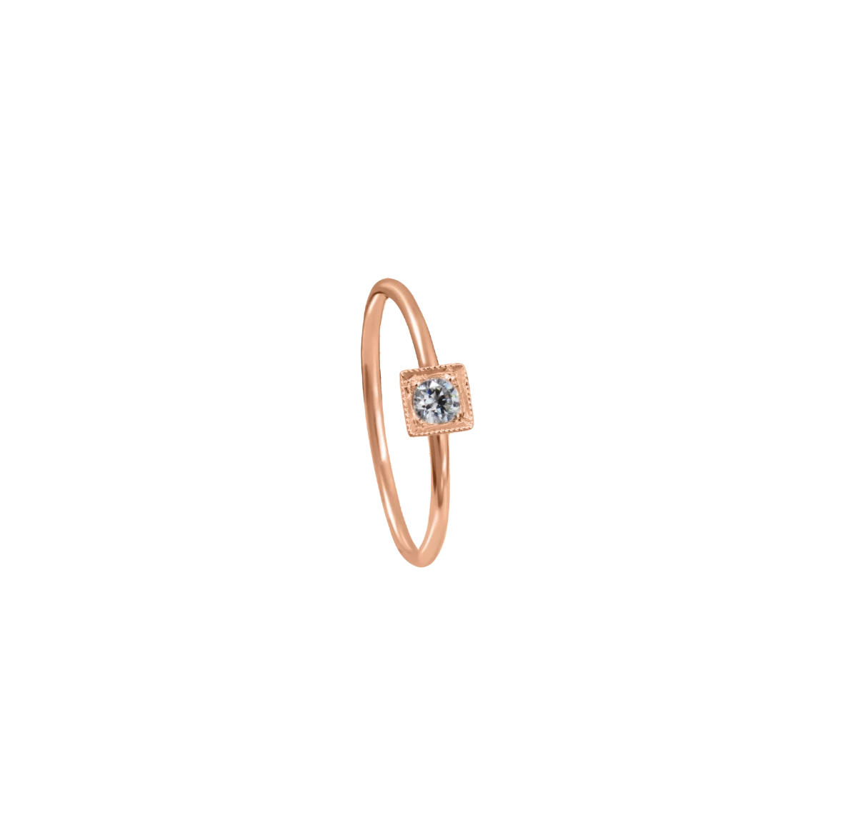 Roza zlat 14K prstan z 1 kamnom iz cirkonija
